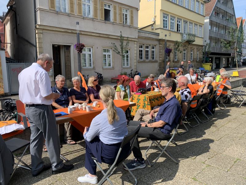 Einen ganz herzlichen Empfang bereitete der Weltladen Reutlingen den Teilnehmenden. Nach den Begrüßungsworten von Oberbürgermeister Thomas Keck gab es selbst gemachten Kuchen, Kaffee, Apfel-Mangosaft aus der Region und und und…